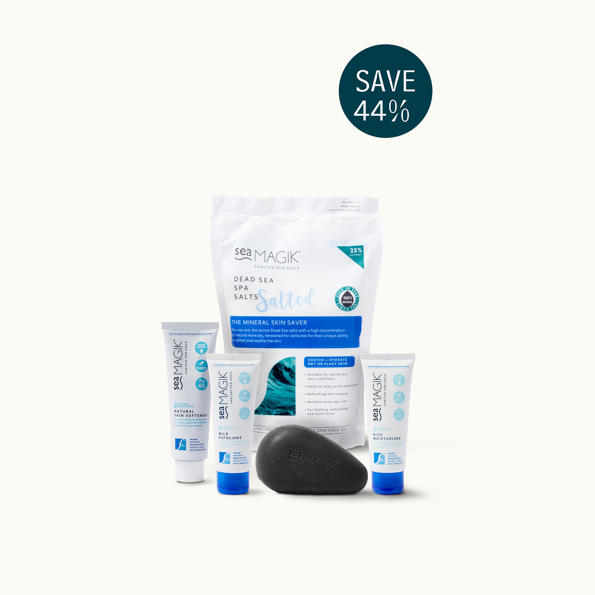 Sea Magik Eczema + Psoriasis Solution brings together five mineral-rich products created to calm, hydrate and support dry, sensitive and problem-prone skin. As pioneers in Dead Sea mineral skincare, we developed the first natural healing range for eczema and psoriasis, and this limited edition set features the products most trusted for these skin concerns. Save 44% when purchased as a set.